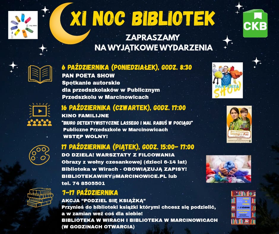 Zapraszamy na wyjątkowe wydarzenia w naszych bibliotekach w ramach ogólnopolskiej akcji "Noc Bibliotek 2025".
